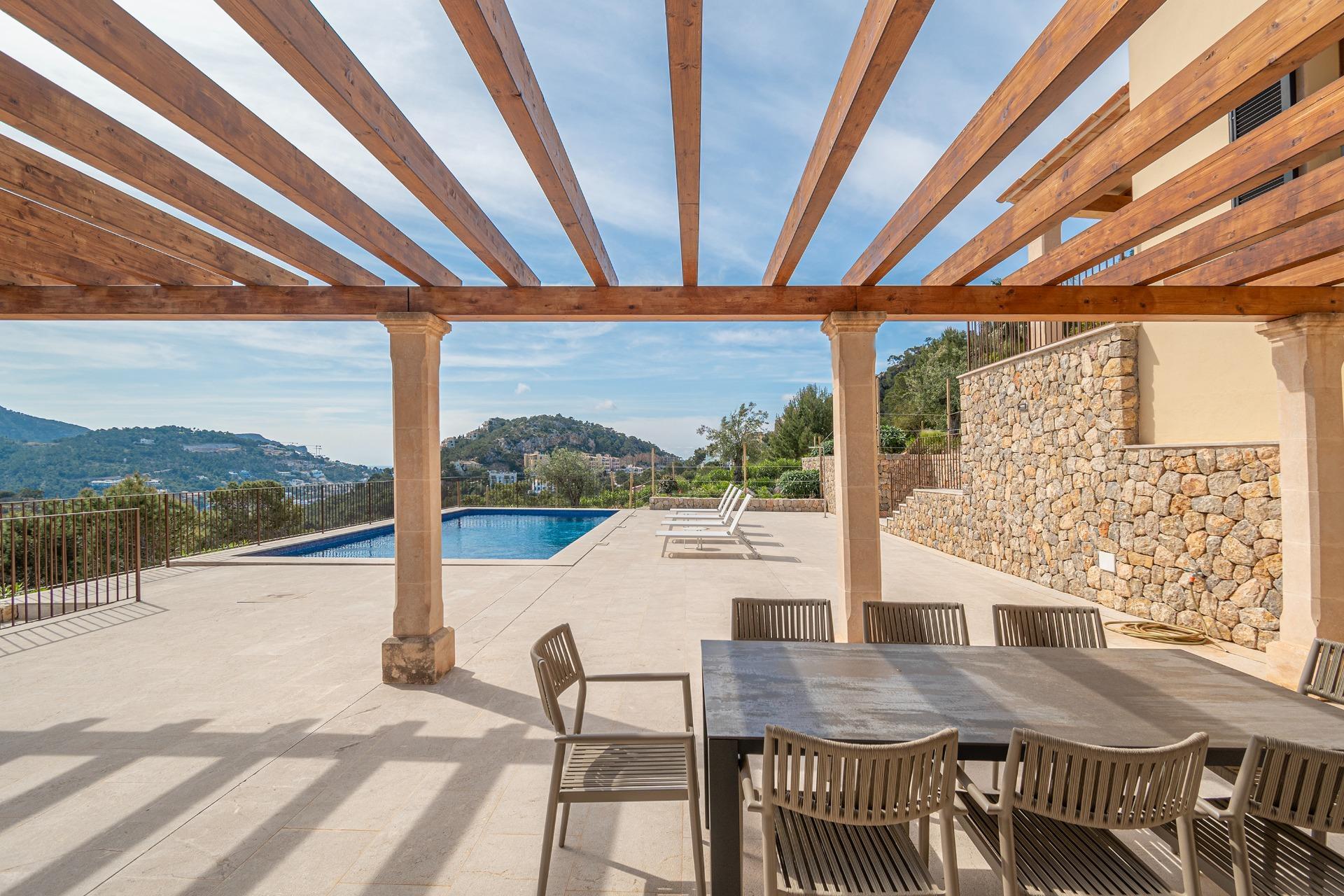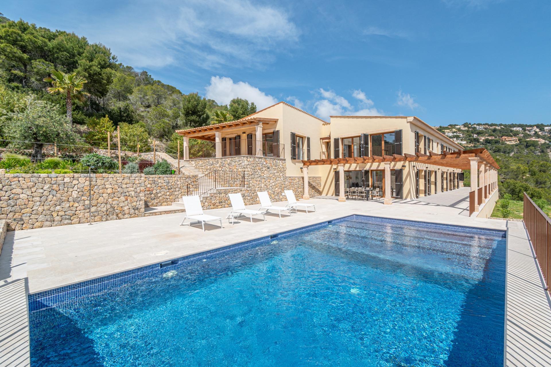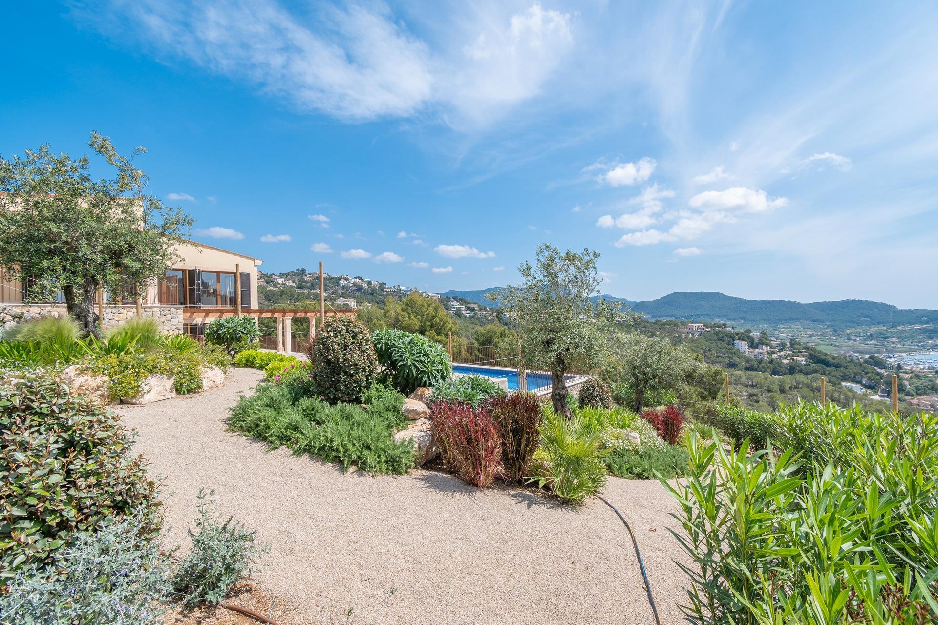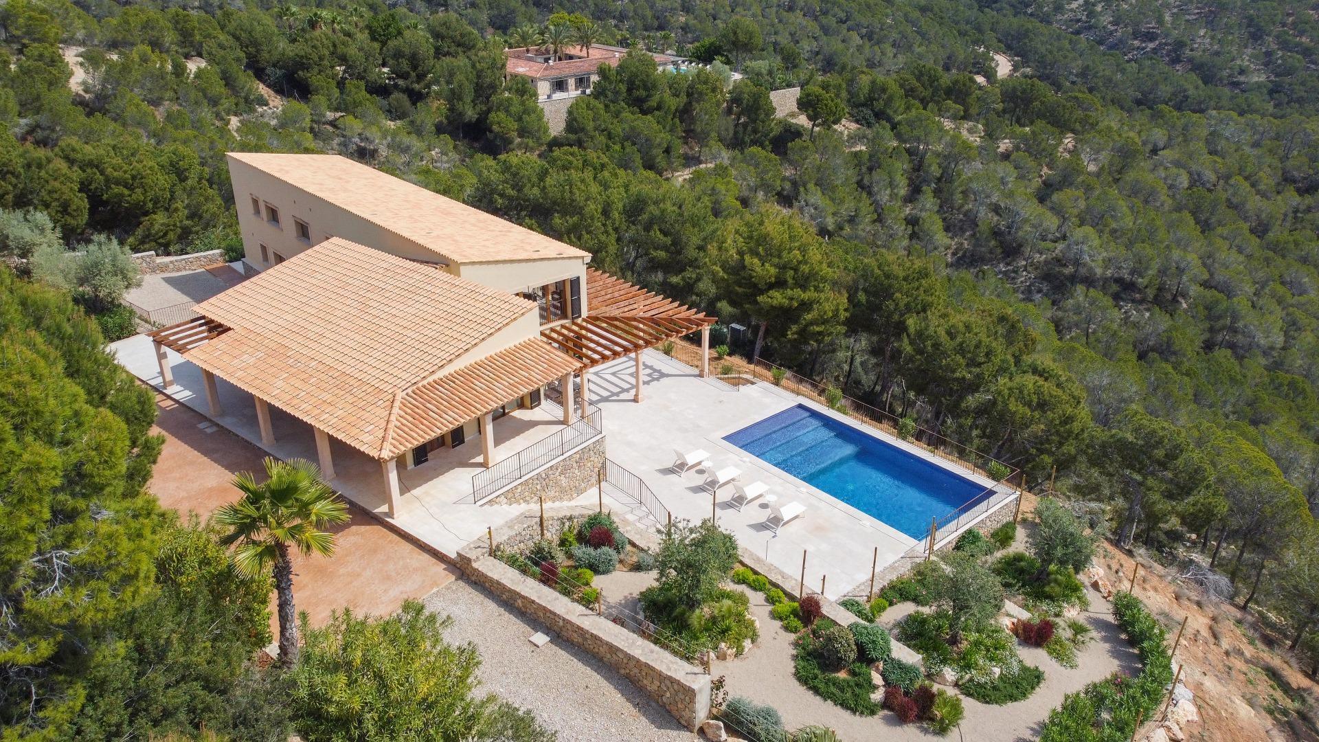 The property combines modern elegance with traditional Mediterranean touches, creating an atmosphere of sophistication and comfort surrounded by nature, offering unmatched privacy in a tranquil and natural environment. To highlight the impressive terraces, ideal for enjoying the sun and the outdoors, as well as its porches and the fantastic pool surrounded by a Mediterranean garden, offering total privacy within a plot of more than 70,000 m², always with unparalleled views. The house is distributed over two floors.