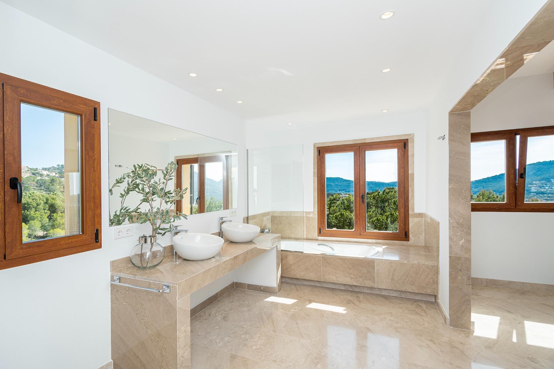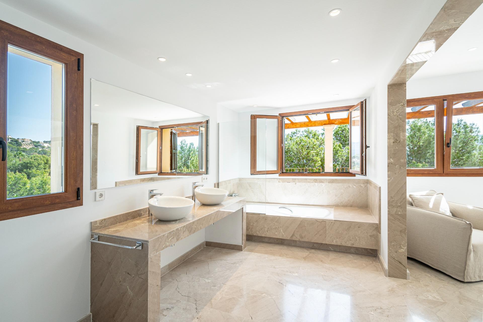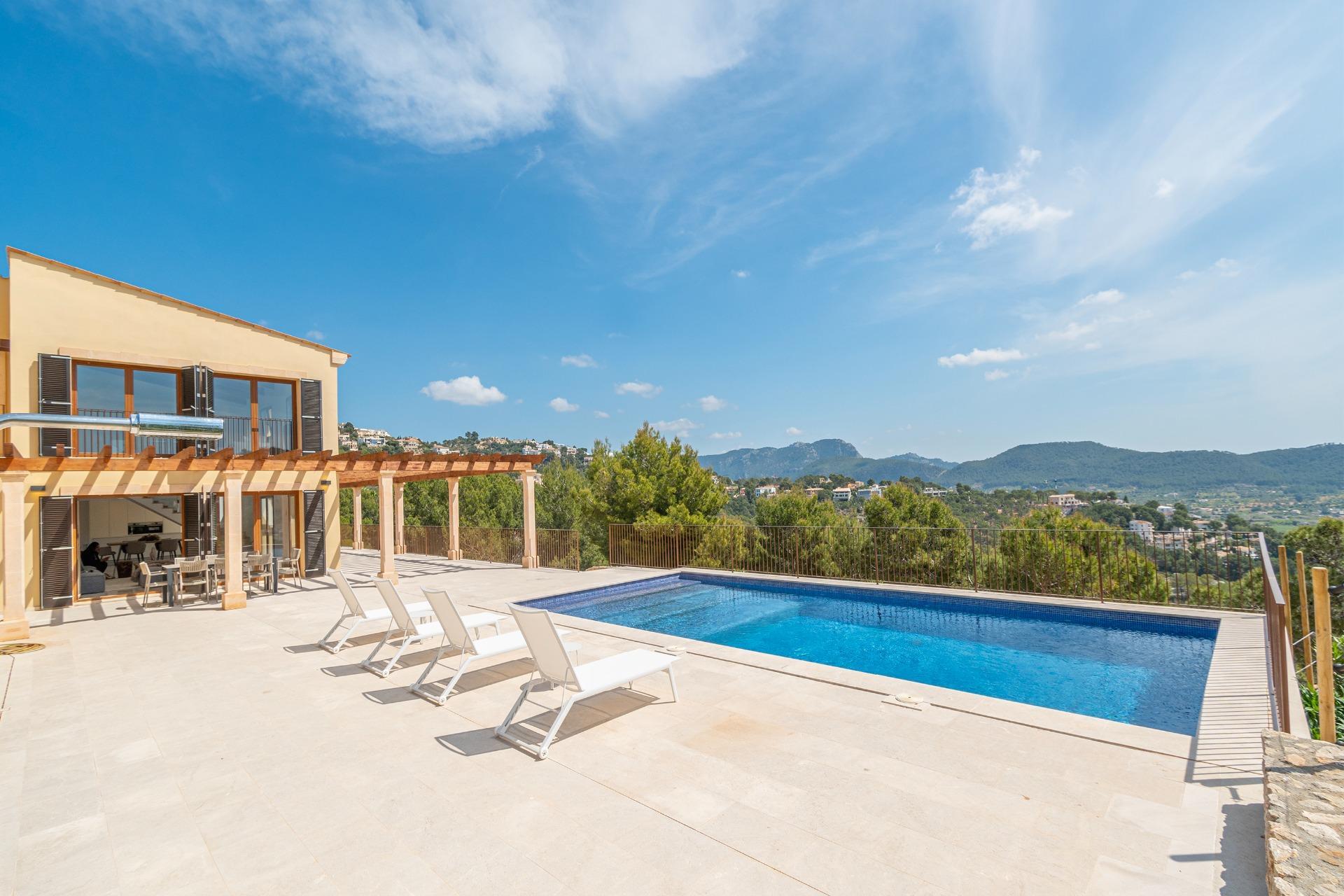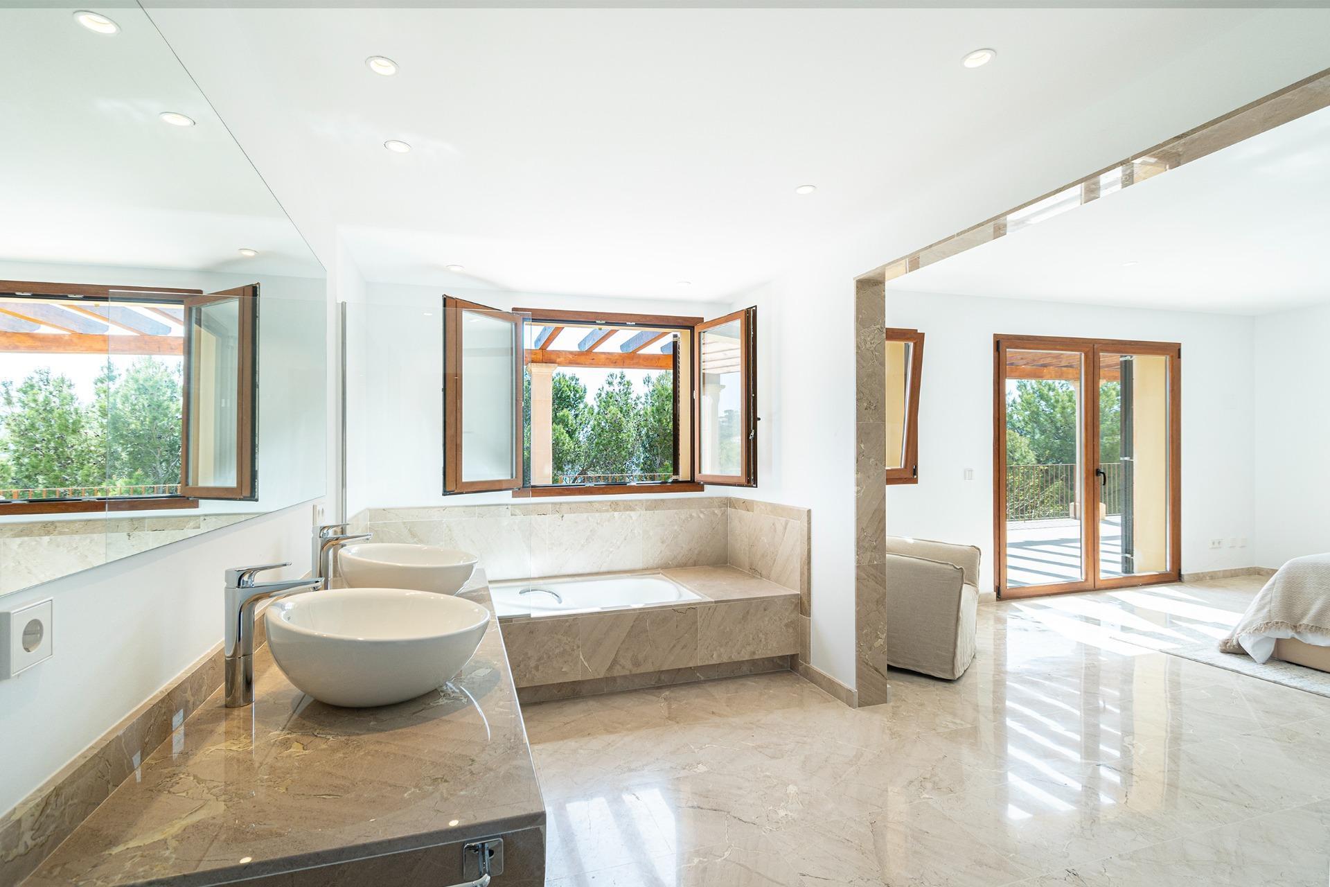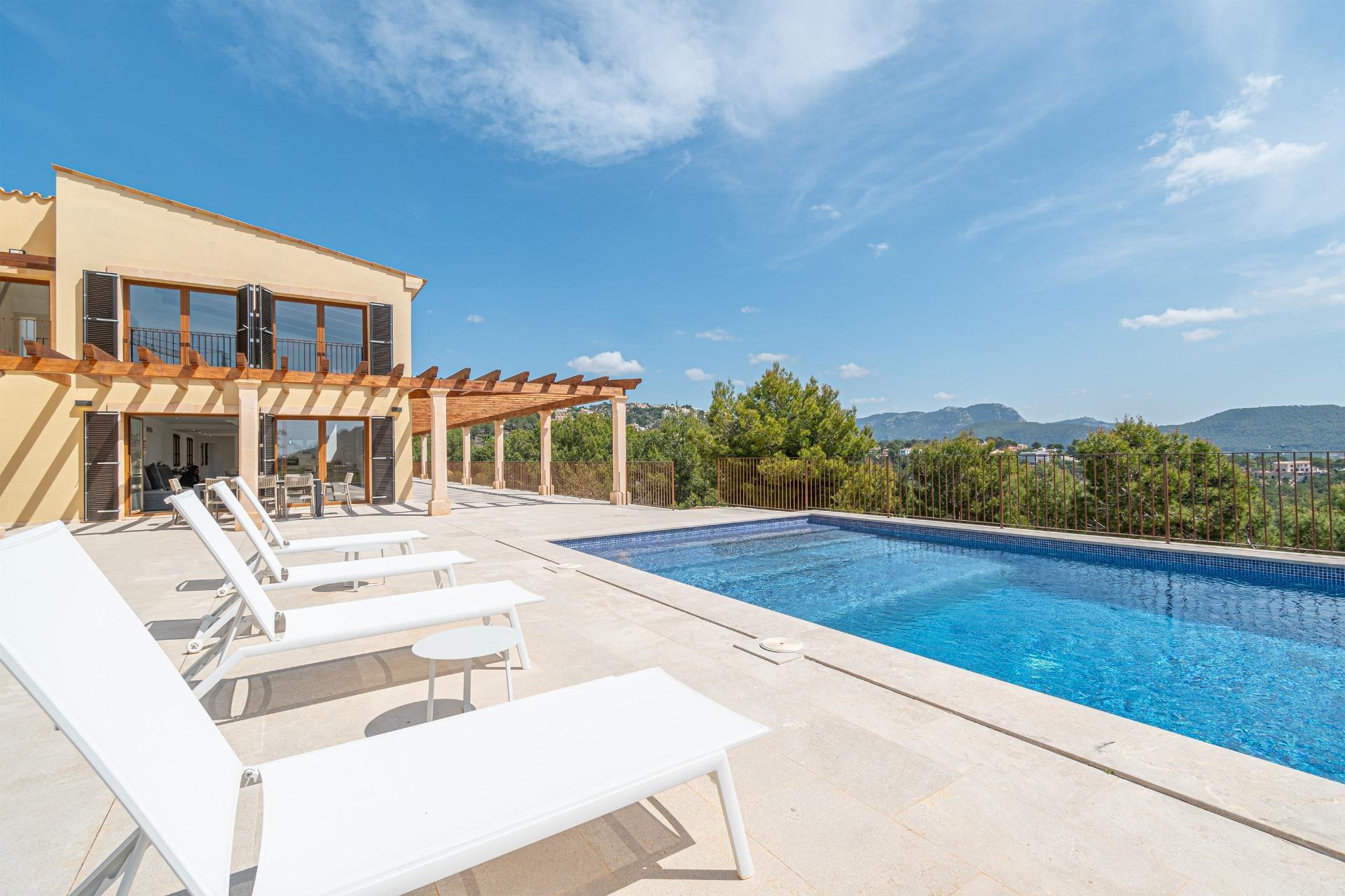 The property combines modern elegance with traditional Mediterranean touches, creating an atmosphere of sophistication and comfort surrounded by nature, offering unmatched privacy in a tranquil and natural environment. To highlight the impressive terraces, ideal for enjoying the sun and the outdoors, as well as its porches and the fantastic pool surrounded by a Mediterranean garden, offering total privacy within a plot of more than 70,000 m², always with unparalleled views. The house is distributed over two floors.