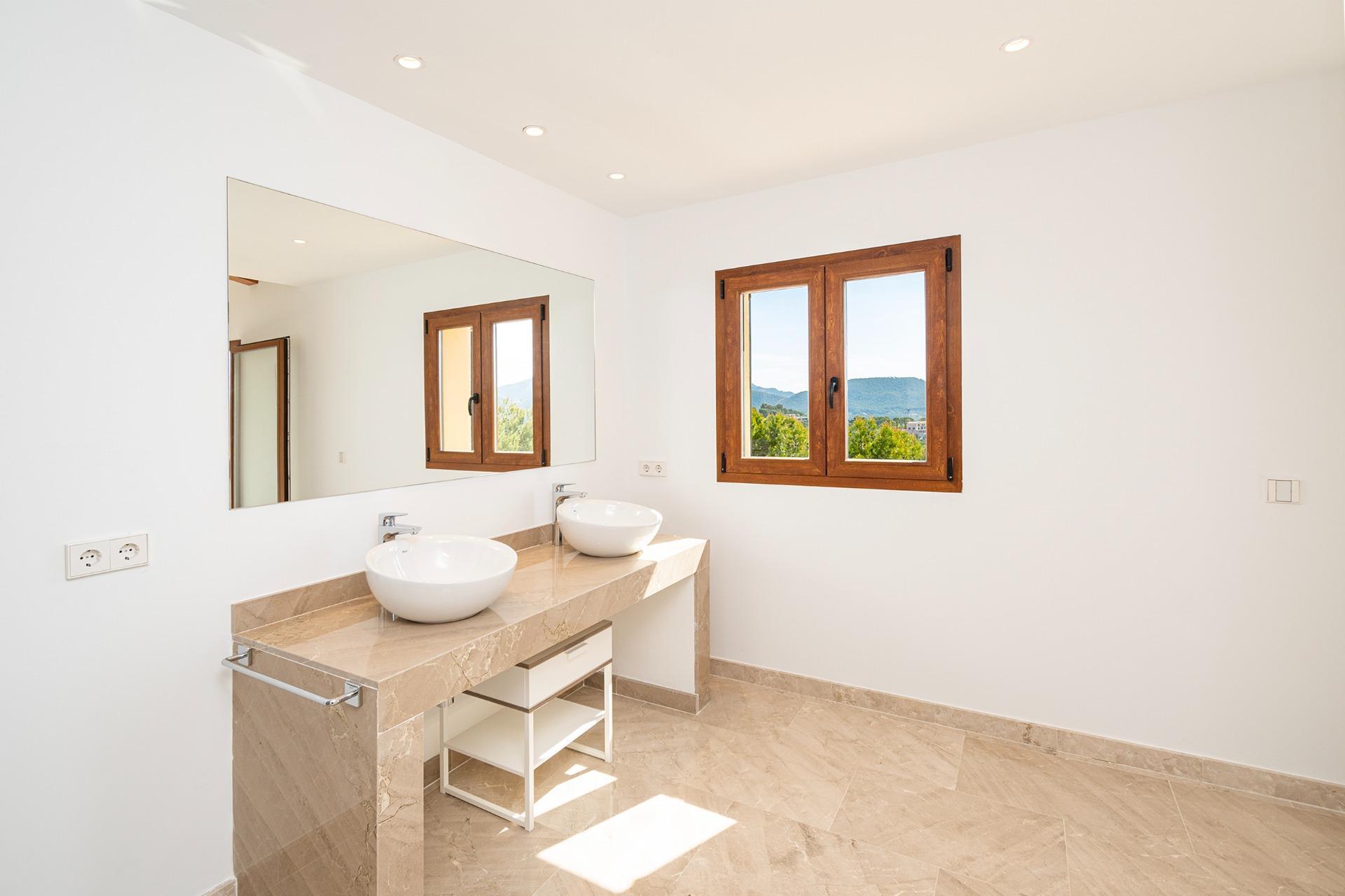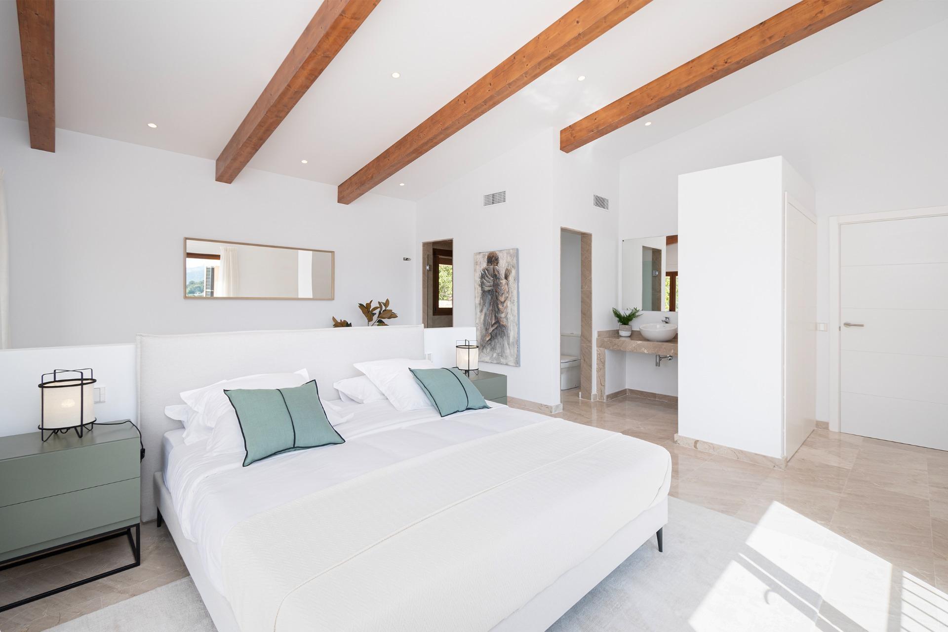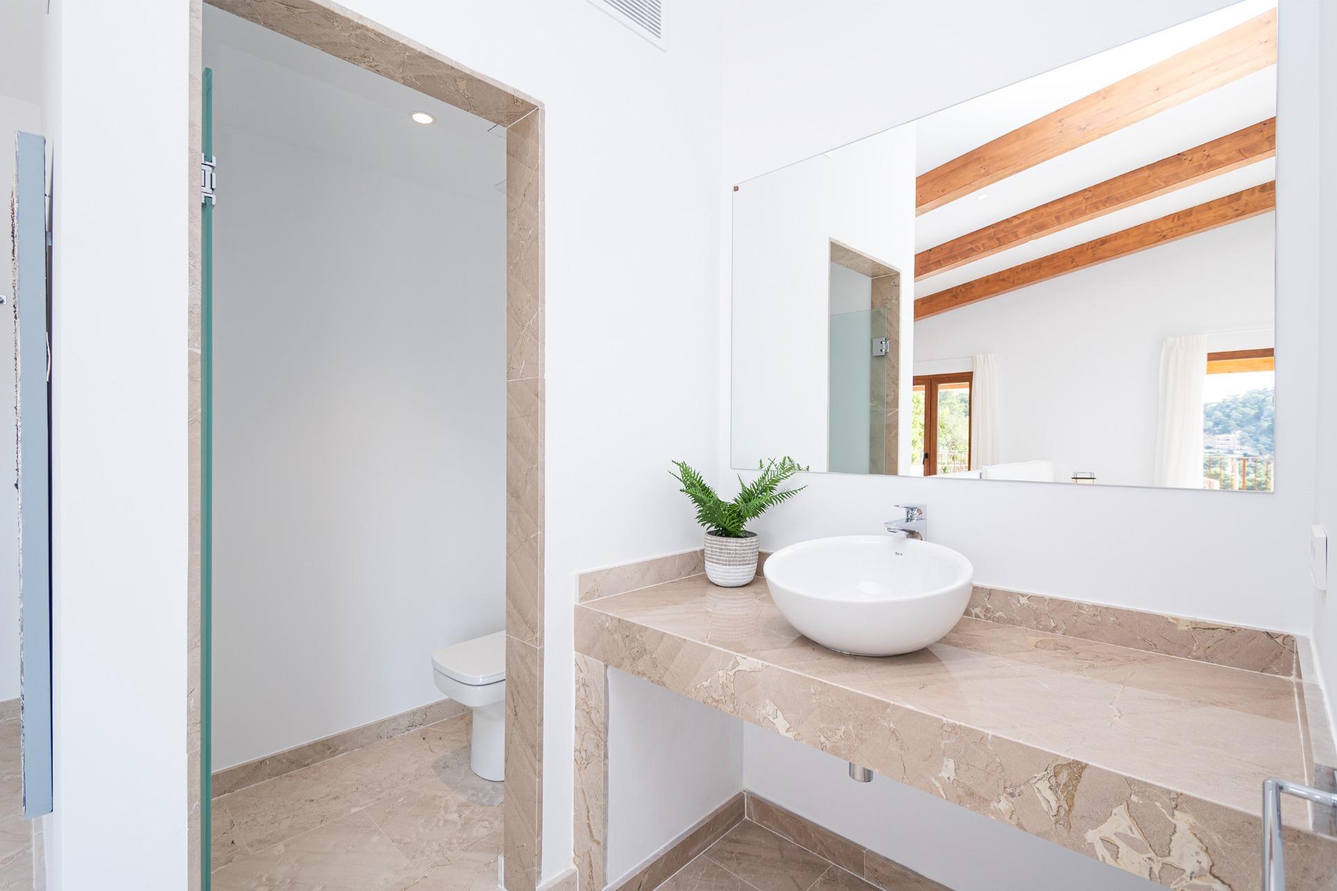 On the first floor we find a large entrance that leads to the "winter room", as we call the most intimate living room, with the possibility of installing a fireplace, a traditional cozy space in Mallorca. On this floor we also find the Guest apartment: Located to the right of the entrance, this apartment offers multiple possibilities according to the tastes and desires of the buyer. To the left of the entrance, there are two large bedrooms, each with built-in wardrobes and an en-suite bathroom, providing comfort and privacy.