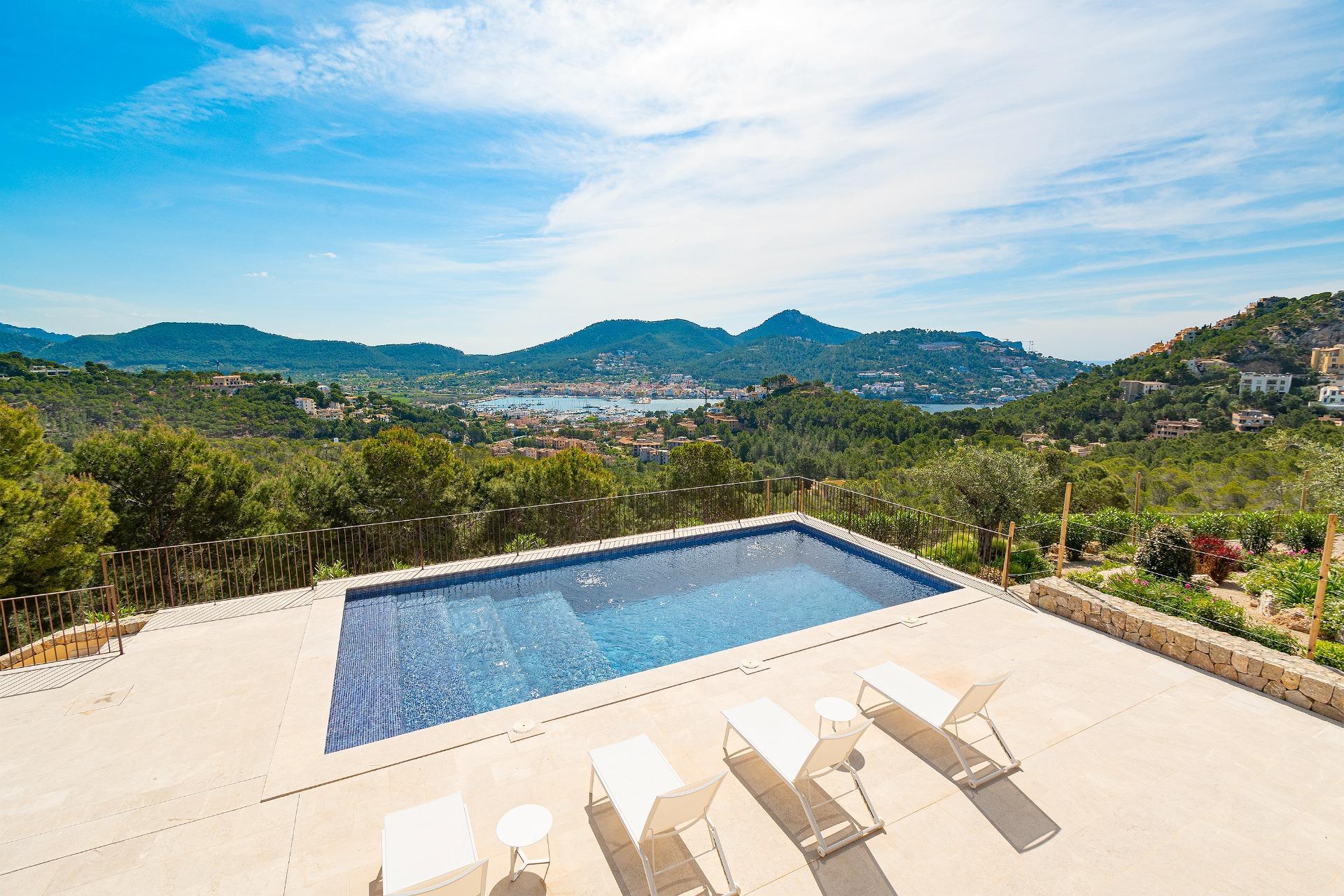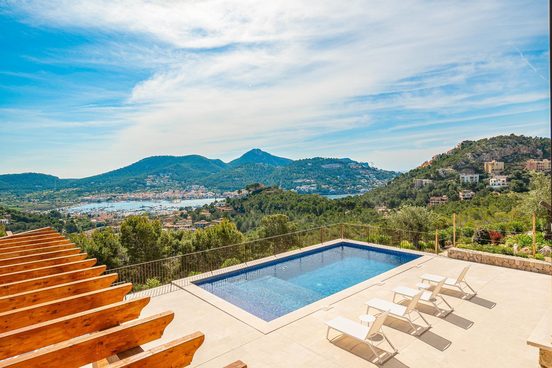 This exclusive Villa is located in a privileged position with panoramic views of the famous Port of Andratx, in Mallorca, Spain.