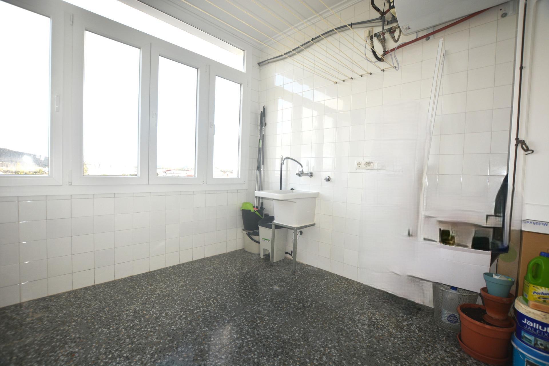The hallway ends in a very good-sized laundry room, completely enclosed with double glazing and with the much sought-after views of the S'Engolidor ravine. In this laundry room, we have the water heater that is heated by solar panels located on the communal roof of the building.